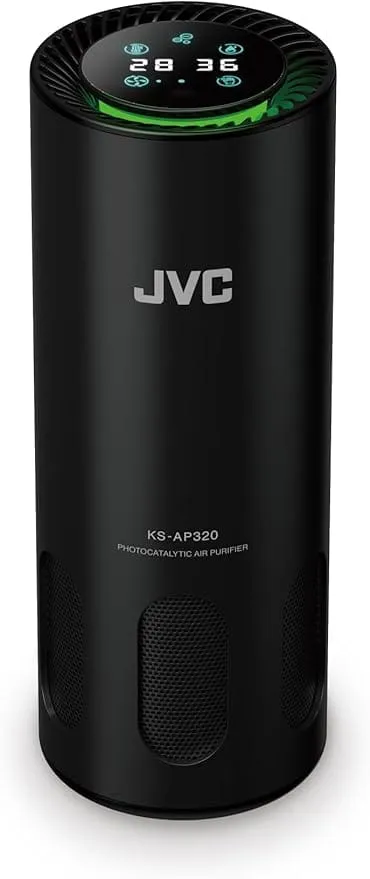 10 avis sur JVC KS-AP320 Purificateur d’air photocatalytique (EPA E12, UV-C, ioniseur) – CADR 8,5 m³/h, 2 vitesses, commande gestuelle, indicateurs qualité de l’air/température/humidité