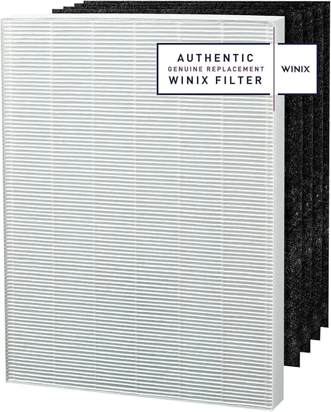 The Winix True HEPA + 4 Filter Activated Carbon Replacement Filter includes a True HEPA filter and 4 carbon pre-filters, helping to rid the air of dust, allergens and other particles;Use to replace worn out filters, Helps remove allergens and other airborne particles while absorbing odors and VOCs;Fits Winix air cleaner models 9000, 5000, 5300,5000B, P300;Includes 4 carbon pre-filters for year-round use, Recommended replacement schedule of carbon pre-filter is once every 3 months Recherchez B002QUZJAS ou Winix 115115 pour le filtre de rechange Winix authentique pour vous assurer que ce que vous achetez est digne de votre investissement Conçu pour les purificateurs d’air Winix 5300-2, C535, 6300-2, P300 pour maintenir ses performances optimales. Avec un prix économique pour économiser beaucoup de coûts pour vos besoins de nettoyage de l’air tout au long de l’année. Il est recommandé de remplacer les filtres tous les 12 mois Capture 99,99 % des allergènes atmosphériques, y compris le pollen, la poussière, la fumée, les squames d’animaux et d’autres particules ultrafines aussi petites que 0,01 microns Réduit les COV et les odeurs domestiques de la cuisine, des animaux domestiques et de la fumée. Il est conçu pour attraper les particules atmosphériques trouvées à l’intérieur, ce qui aide également à prolonger la durée de vie du véritable filtre HEPA Lot de filtres de rechange Winix authentiques d’un an. Pour une performance optimale, il est recommandé de changer le filtre HEPA une fois tous les 12 mois et le filtre à charbon une fois tous les 3 mois. L’unité est également équipée d’un indicateur de filtre de contrôle. Grâce à ses performances avancées, il purifie efficacement votre intérieur en éliminant poussières, allergènes, virus et bactéries pour une protection optimale de votre santé. Son fonctionnement particulièrement silencieux vous permet de profiter pleinement d’un environnement calme et serein, que ce soit dans votre salon, votre bureau ou votre chambre.